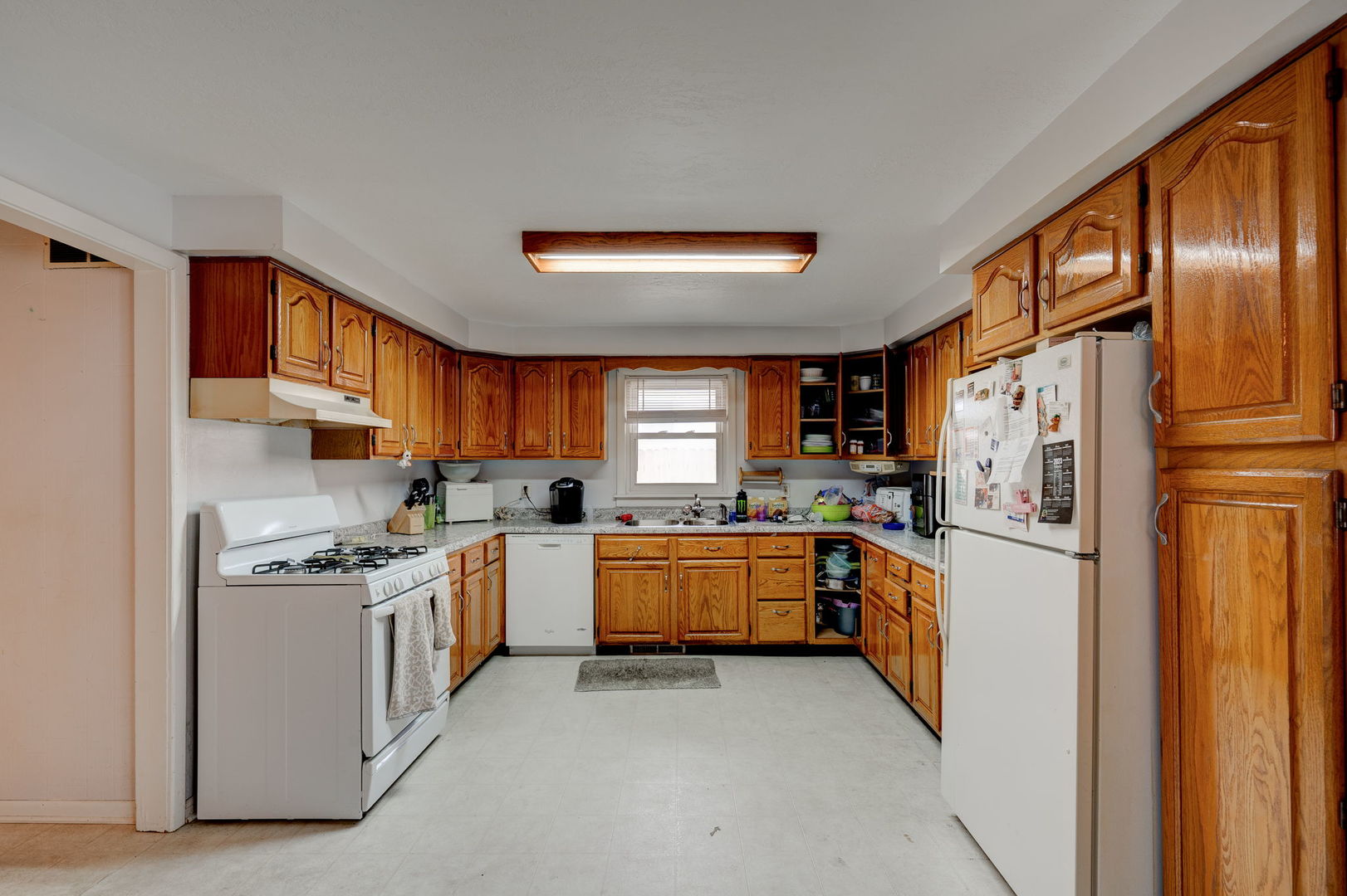 GREAT LOCATION CORNER HOME A fooler from outside a must see inside-Unbelieveable Kitchen 26x12-Cement Patio to Garage-Garage has Electric-Heat-Overhead Lighting&Stool&sink-not stay-L.R. is kind of L - shaped 19x13 plus 13.6x12 LOTS OF HOUSE FOR THE MONEY!