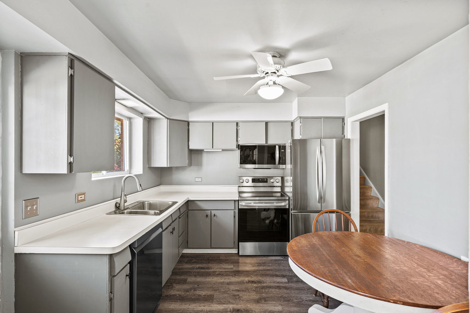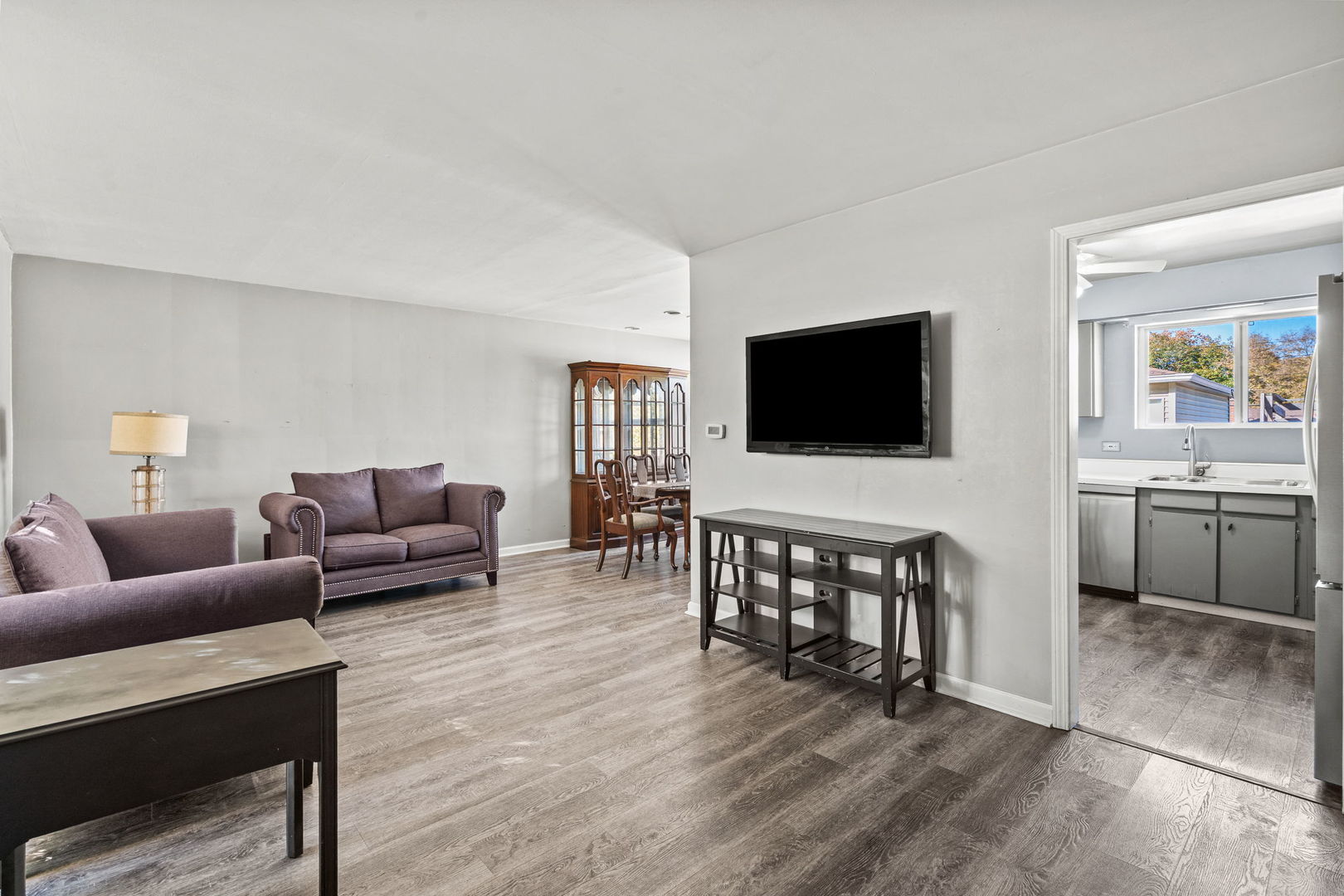 Charming All-Brick Split-Level in Desirable Brentwood Terrace! Welcome to this inviting 3-bedroom, 2-bath home nestled in the sought-after Brentwood Terrace Subdivision - a beautifully maintained neighborhood known for its all-brick homes, mature tree-lined streets, and dog-friendly walking paths. It's the perfect place to enjoy peaceful strolls and the beauty of every season. Step inside and you're greeted by new grey wood laminate flooring (with hardwood underneath) flowing through the spacious living and dining room combo, accented by neutral tones and oversized windows that fill the space with natural light. The kitchen offers all new stainless steel appliances, room for an eat-in table, and a charming window overlooking the backyard - ideal for your morning coffee. Upstairs, you'll find three generous bedrooms and a full bath with a soaking tub, plus hardwood floors under the carpet and new white vinyl windows throughout. The partially finished lower level provides great flexibility with a bright family room area, new carpet and trim, plenty of recessed lighting, a second full bath with a standing shower, and new windows. The laundry and utility area feature a 5-year-old washer, dryer, and mechanicals, along with a deep closet for extra storage. 5yr Roof. A convenient walk-out basement leads to your fully fenced backyard complete with a deck, gardening space, and an above-ground pool that stays with the home. The detached 2.5-car garage is in excellent condition and provides ample room for hobbies or storage, and the extra-long asphalt driveway offers plenty of parking - perfect for gatherings and holidays. Located in DuPage County, this home is centrally positioned near parks, schools, shopping, restaurants, expressways, O'Hare Airport, and Redmond Park. Don't miss this wonderful opportunity to make this well-loved home your own. Schedule your showing today!