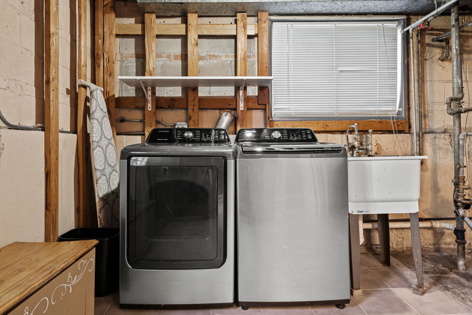 Range, Microwave, Dishwasher, Refrigerator, Washer, Dryer, Stainless Steel Appliance(s)