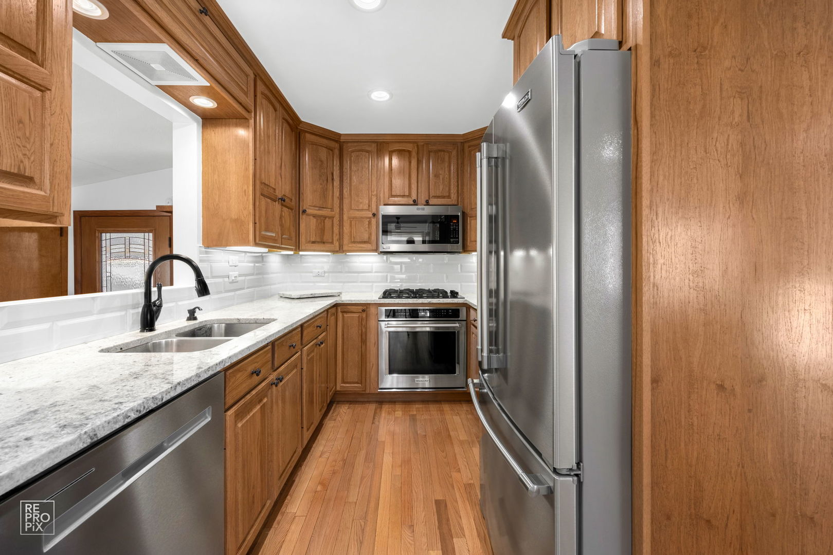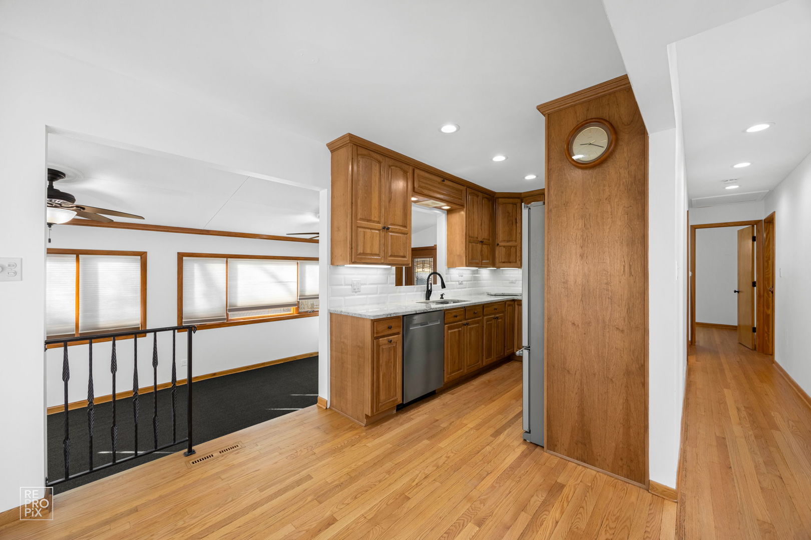 WELCOME HOME! THIS BEAUTIFULLY UPDATED RANCH IN FANTASTIC ELMHURST NEIGHBORHOOD FEATURES AN OPEN FLOOR PLAN WITH THREE BEDROOMS, TWO FULL BATHROOMS, FULL FINISHED BASEMENT, HUGE LOTS TOTALING 85X145/OVER 12,000 SQ FT SIZE W/UNLIMITED EXPANSION POTENTIAL, GLEAMING HARDWOOD FLOORS THROUGHOUT, LARGE BRIGHT LIVING ROOM W/TWO NEW SKYLIGHTS, NEWER KITCHEN W/42" HONEY HICKORY CUSTOM CABINETS, ALL SS APPLIANCES, GRANITE TOPS, BEAUTIFUL WHITE TILED BACKSPLASH, UNDERMOUNT CABINET LIGHTS AND EATING AREA, THREE BEDROOMS, TWO UPDATED FULL BATHROOMS, FULL FINISHED BASEMENT, STORAGE ROOM, AND LAUNDRY ROOM, SUN ROOM W/VAULTED CEILING CAN BE USED AS A REC- ROOM OR OFFICE SPACE, RECENT UPDATES: ROOF 2024, REFINISHED HARDWOOD FLOORS 2024, SKYLIGHTS 2024, LED LIGHTS RECESSED LIGHTING, SUMP PUMP W/BACKUP BATTERY 2024, NEWER WATER HEATER, LIGHT FIXTURES, FRESH PAINT THROUGHOUT, FRONT AND BACK DOOR WITH SCREENS, NEW CARPET, ANDERSON WINDOWS IN SUN ROOM , OVERSIZED DOUBLE LOT W/FENCED YARD, COVERED PATIO WITH PERENNIAL FLOWERS, 1.5 CAR GARAGE WITH BIG MULTI CAR DRIVE, EXCELLENT LOCATION A SHORT WALK TO BERENS PARK, TOP-RATED SCHOOLS, CHARMING DOWNTOWN SHOPS, DINING, AND EASY ACCESS TO METRA TRAIN, MAJOR HIGHWAYS, READY TO MOVE IN!!!SCHEDULE YOUR SHOWING TODAY!