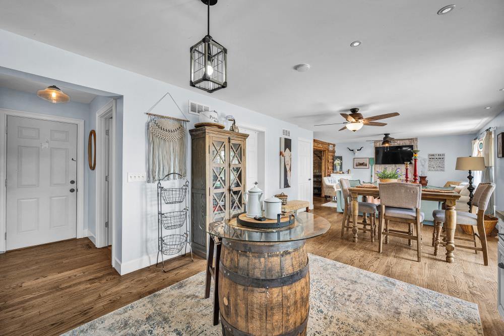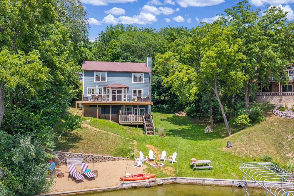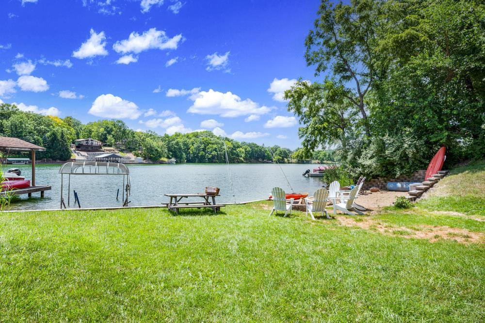 Waterfront property with private beach and walkout basement! This beautiful three-story lake house is tucked away in a secluded, quiet neighborhood with nature trails and local farms nearby. Enjoy true lake living with a private beach, boat lift, fire pit, and the ability to fish right from your own backyard. The home offers a custom kitchen with butcher block countertops, brick backsplash, and panoramic windows showcasing stunning lake views. New porches on both the second and ground levels provide direct lake access. Updated 2024 LP siding on three sides, along with a wood-front exterior, adds rustic charm to this unique country retreat. The spacious walkout basement is perfect for a gym, recreation area, or game room. Additional features include a primary bedroom with fireplace, walk-in closet, completely remodeled bathroom, two additional bedrooms with scenic lake and wooded views, a full bath with subway tile tub/shower, a two-car garage, extra storage for kayaks and beach accessories, and a large yard. Residents of Lake Thunderbird enjoy access to outstanding amenities including fishing and boating, beach a pool, clubhouse, playgrounds, basketball courts, tennis, mini golf, and more. Ideal as a primary residence or vacation home, conveniently located within easy driving distance to Chicago and close to Starved Rock, Historic Princeton, the Peoria Riverfront, shopping, and more.