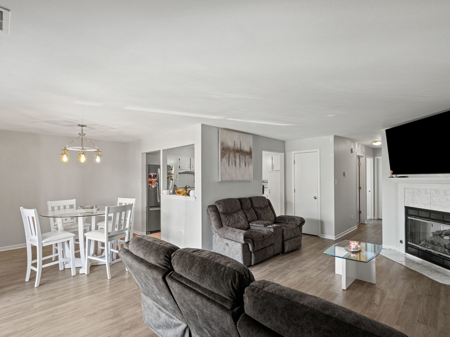 Cozy two bedroom, two bath, third floor condo! This home offers spacious living and dining area filled with natural light. New laminate flooring, new windows, newer roof with low HOA fees. The primary bedroom includes an en-suite bath and generous closet space, while the second bedroom is ideal for guests or a home office. Complete with a full size laundry room and one car garage! SHOWINGS TO BEGIN SATURDAY 11/1