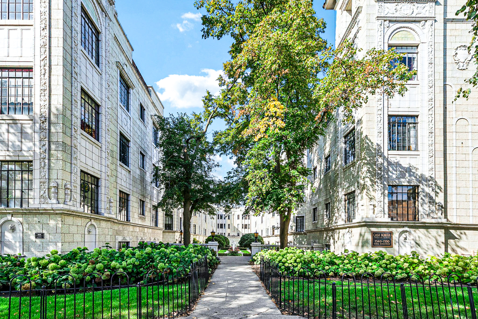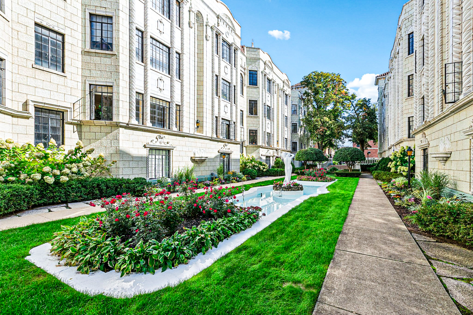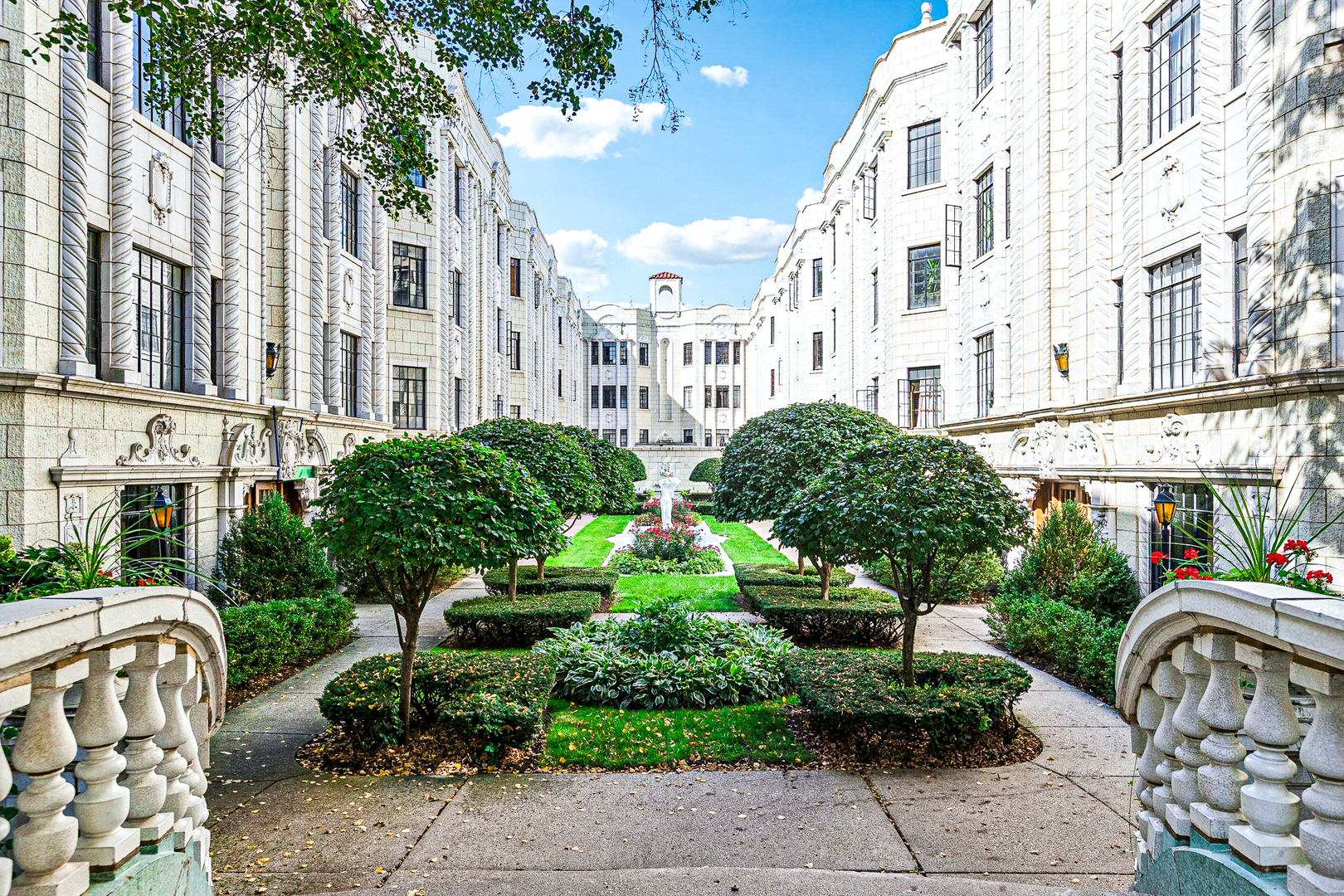 It is with great pleasure that I present this exquisite 2-bedroom, 1-bath residence in the iconic Casa Bonita-one of West Ridge's most cherished architectural landmarks. From the moment you enter this distinguished Spanish Renaissance Revival building, graced with timeless white terra cotta detailing, you are transported to an era defined by elegance, character, and charm. Situated on the second floor, this beautifully preserved and thoughtfully appointed condominium offers a rare opportunity to call a piece of history home. As you step inside, rich hardwood floors lead you into a sun-drenched and spacious living room, where a decorative fireplace and dramatic south-facing windows frame picturesque views of the lush, impeccably landscaped courtyard. Soaring ceilings adorned with timeless crown molding enhance the elegance and charm that carries throughout the home. Just beyond, a generous formal dining room-perfectly situated off the kitchen-sets the stage for unforgettable gatherings. Whether hosting Halloween festivities, a cozy Thanksgiving dinner, or sparkling Christmas and New Year's celebrations, this space was made for memories. What truly elevates life at Casa Bonita, however, is its unparalleled sense of community and thoughtfully curated amenities. Beyond the elegance of your private space, the building itself offers beautifully maintained common areas, where Terrazzo floors in the grand hallways set the tone for a lifestyle steeped in tradition and charm. Residents enjoy access to a wealth of shared spaces designed to enrich daily living and foster connection-an embodiment of the gracious, communal spirit that defines this extraordinary building. Enjoy a wealth of thoughtfully curated amenities designed to elevate everyday living. Host memorable gatherings in the spacious party room, while little ones delight in their very own playroom and game room complete with pool and ping pong tables. Stay active in the fully equipped fitness center or indulge your creativity in the woodworking studio. For convenience, you'll find a dedicated bike room along with your own private storage space. And then, the crown jewel: a year-round, heated indoor swimming pool that seamlessly opens to three tranquil outdoor lounging and picnic areas. Picture summers spent poolside, grilling with friends and neighbors, and unwinding in the sauna or steam room-just moments from your front door. This is more than a condominium-it's a way of life. A rare harmony of architectural elegance, modern amenities, and a welcoming neighborhood spirit, all in the heart of Chicago's vibrant North Side.
