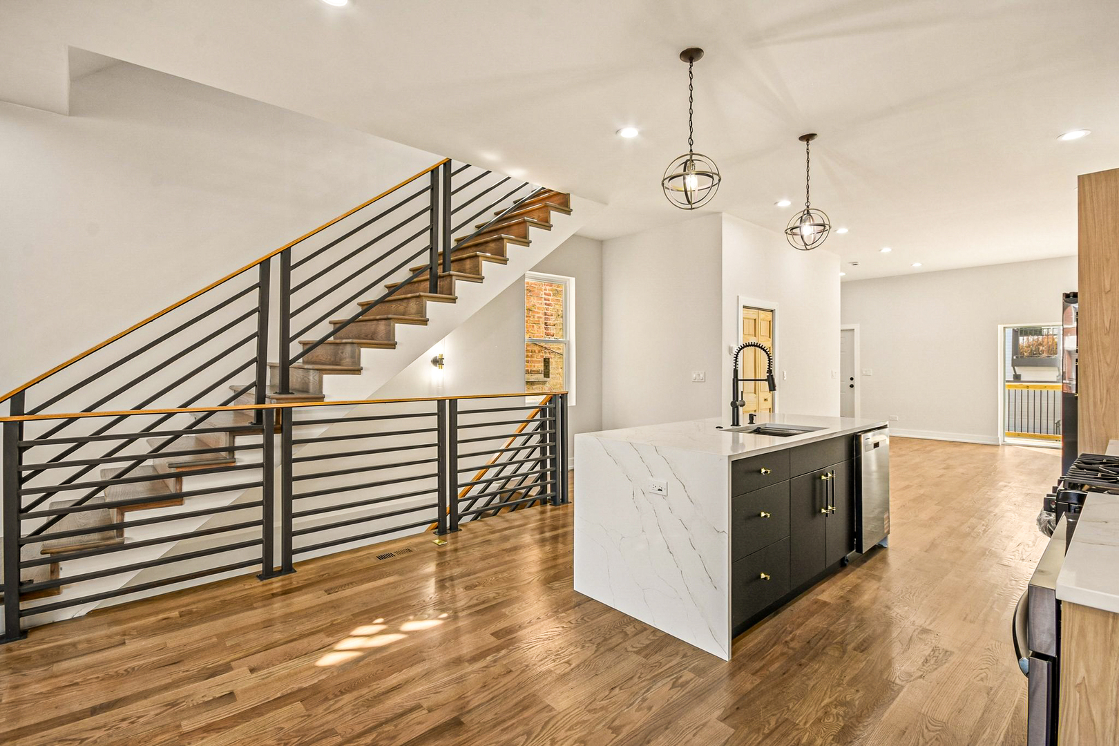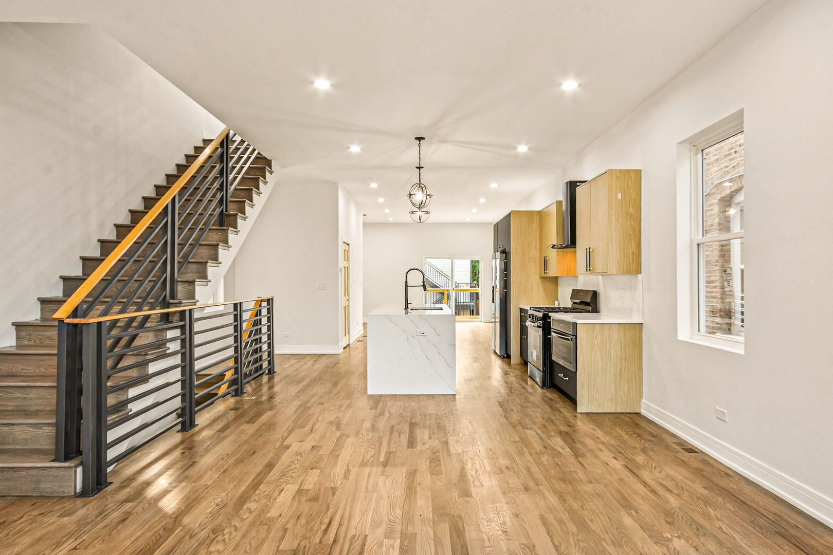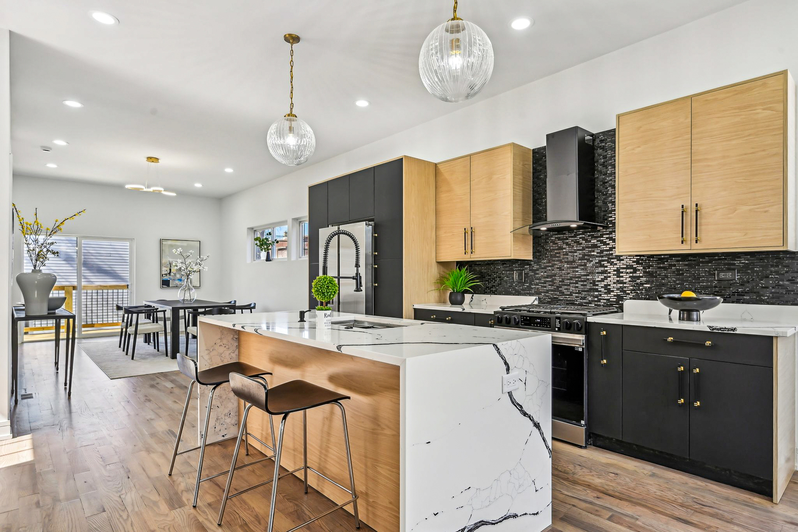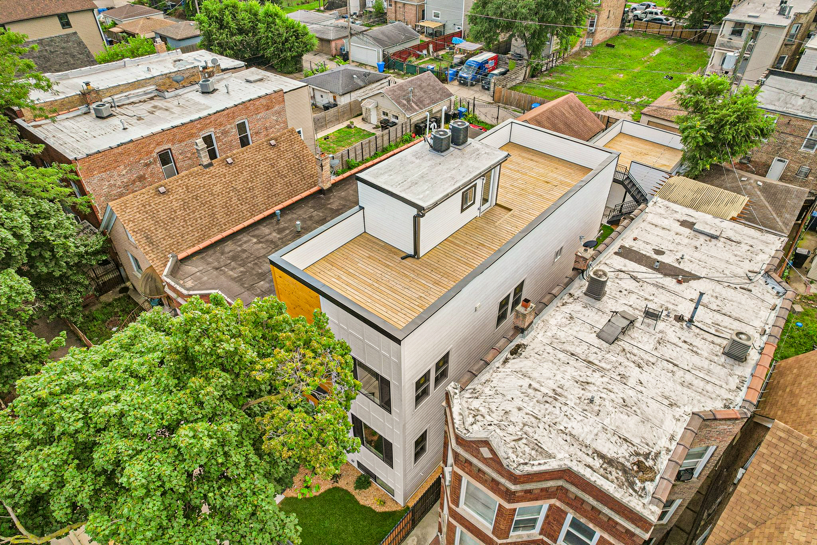 Luxury Meets Modern Living in West Humboldt Park: Welcome to this stunning new construction single-family home, perfectly situated in the rapidly growing West Humboldt Park neighborhood. Thoughtfully designed for both comfort and sophistication, this multi-level residence offers 5- spacious bedrooms, 3.5 luxurious bathrooms, a cozy family room, a flex-room/ space, and multiple outdoor living areas, including an expansive rooftop deck. With a 2-car garage and elegant design elements throughout, this home truly has it all. Exceptional Interior Design & Thoughtful Layout: Step inside through the inviting front entrance and be greeted by an open-concept floor plan bathed in natural light. The living room, dining area, and chef's kitchen flow seamlessly together, creating a perfect setting for everyday living and entertaining. Large, energy-efficient windows highlight the beauty of the light wood floors that run throughout the home. The chef's kitchen is a true showstopper, featuring sleek black shaker cabinetry, quartz countertops, a full-height backsplash, and a large island with breakfast bar seating-ideal for casual dining or hosting guests. High-end stainless steel appliances, including a French door refrigerator and an externally vented range hood, add both style and functionality. A walk-in pantry ensures plenty of storage space for all your culinary needs. Expansive Living Spaces: The lower level boasts impressive 9-foot ceilings, offering a spacious family room, an additional guest bedroom, and a full bath. A versatile oversized room provides the perfect space for a home gym, playroom, or media room, with seamless access to the backyard. Upstairs, the primary suite is a private retreat, complete with a spacious walk-in closet and a luxurious en-suite bathroom featuring dual showerheads and designer finishes. This level also includes two additional bedrooms and a full bathroom, with one bedroom ideal for a sun-filled home office. Unparalleled Outdoor Living: A striking staircase leads to the private rooftop deck, offering a serene escape with breathtaking views-perfect for entertaining, relaxing, or enjoying warm summer nights. Additional outdoor spaces include a gracious front porch, a backyard, and a garage rooftop deck, providing multiple options for entertaining and outdoor enjoyment. Prime Location & Unbeatable Convenience: Enjoy the best of West Humboldt Park with easy access to: Humboldt Park Boathouse, Beach, Tennis Courts, & Cultural Center The 606 Trail Public Transportation Restaurants, Cafes, & Shopping in Nearby Business Districts Premium Features & Upgrades: Hardwood flooring throughout Dual-zoned heating & cooling Lower-level entertainment space with beverage refrigerator & additional storage Spacious laundry room This exceptional new construction home checks all the boxes-high room count, stunning design, incredible outdoor space, and garage parking. With the neighborhood's continued growth and revitalization, this is not only a dream home but also a smart investment opportunity. Don't miss out-schedule your showing today and secure your place in one of Chicago's most exciting neighborhoods!